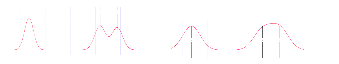 The degree of overlap between the peaks depends on the characteristics of the bridge and the vehicle. For instance, on long bridges, multiple axles contribute to the signal, and several peaks may merge. In this case there may be several axle patterns that explain the measurement equally well. That is, it may not be possible to resolve the peaks and correctly measure individual axles. The range of bridges to which a BWIM system can be appllied depends on the system's ability to resolve the contribution of each axle. This in turn depends on: